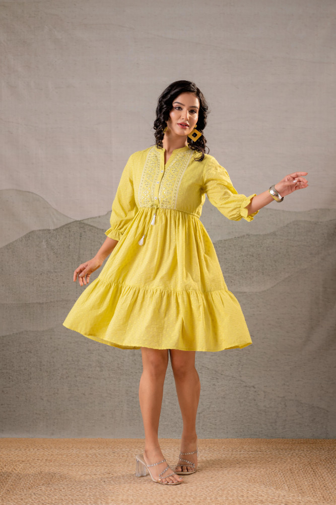 Buttercream Yellow Floral Printed Anarkali Slit Dress