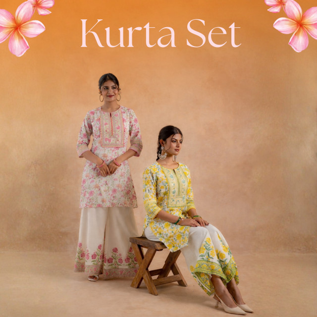 Mustard Floral Printed Viscose Kurta & Pant Set With Button Closure