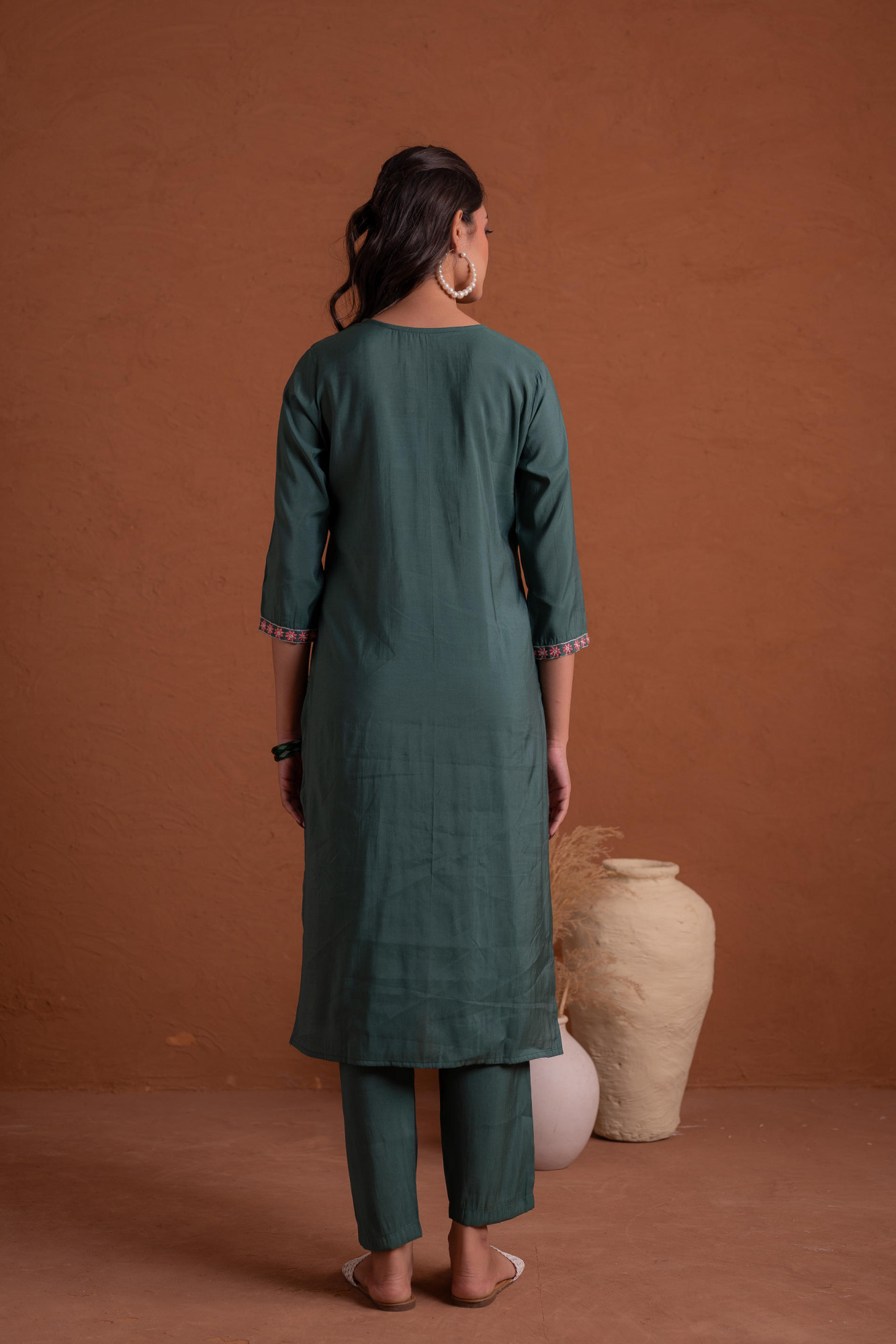 Embrace festive charm with this Green poly viscose straight kurta set featuring intricate thread and sequence embroidery. Designed with a round neck, side slits, and 3/4 sleeves, paired with solid slip-on pants and matching dupatta for elegant occasions.Top Type :- Kurta Top Fabric :- Poly Viscose Dupatta(Yes, No) :- Yes Top Pattern :- Embroidered Print Type :- Solid Top Design Styling :- Straight Top Length :- Calf Length Top Shape :- Straight Neck :- Round Neck Sleeve Length :- 3/4 Sleeve Bottom Fabric :- POLY VISCOSE Bottom Type :- Pant Ornamentation :- Thread Work, Sequence Dupatta Fabric :- POLY VISCOSE Dupatta Pattern :- Solid