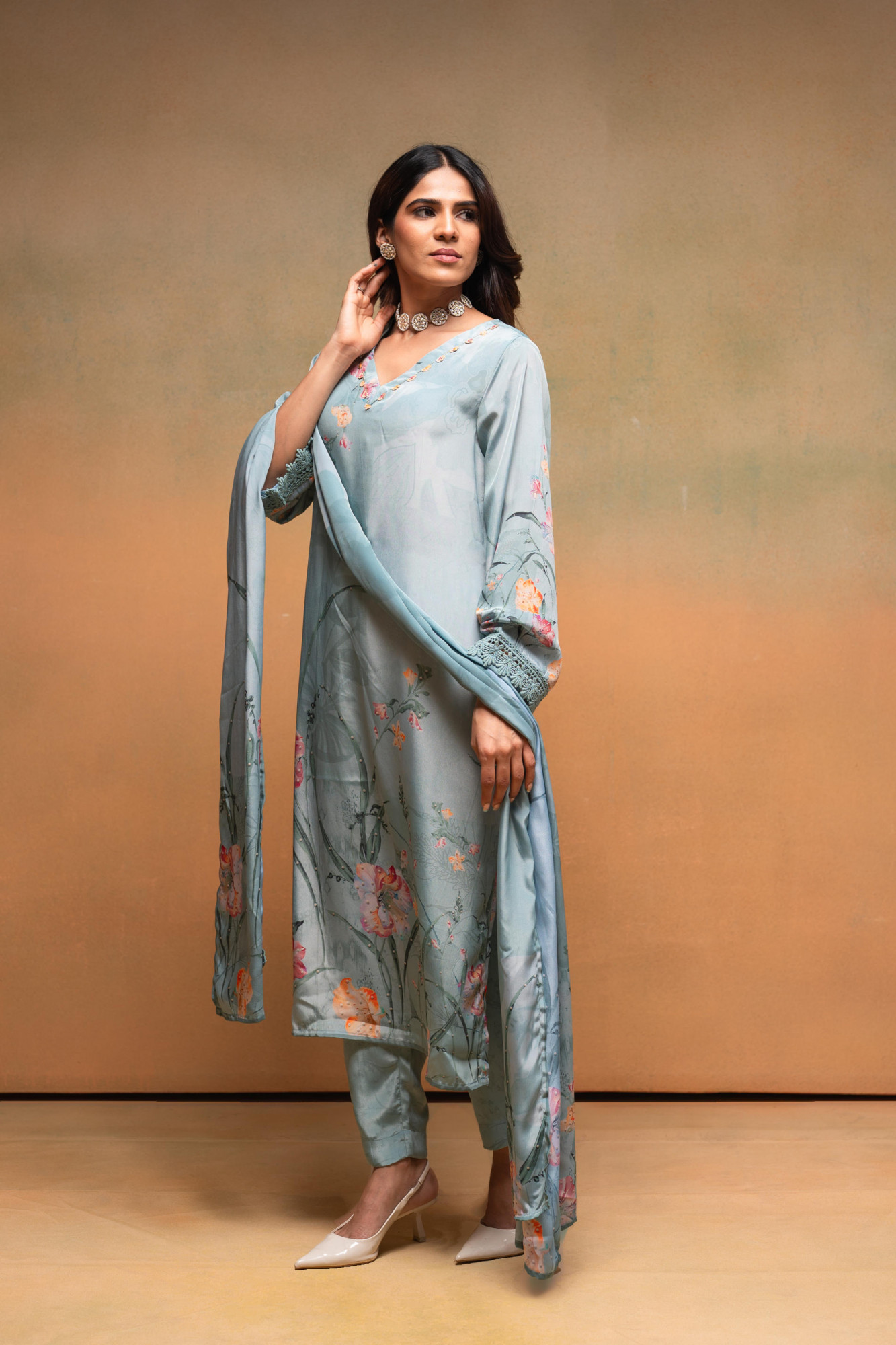 Step into effortless elegance with this mustard yellow embroidered kurta set, featuring exquisite white floral threadwork on the yoke and . Crafted in a straight silhouette for timeless appeal, the set is paired with matching solid pants and a golden zariEach Size 1 Kurta, 1 Pant, 1 Dupatta Top Type :- 1 Kurta, 1 Pant, 1 Dupatta Dupatta(Yes, No) :- Yes Top Pattern :- Printed Print Type :- Floral Print Top Fabric :- Manmade Fiber Top Design Styling :- Straight Kurta Top Hemline :- Straight Top Length :- Calf to ankle-length Top Shape :- Straight Neck :- V-Neck Sleeve Length :- Full Sleeve Styling :- Top Closure :- Slip-on Bottom Fabric :- Manmade Fiber Bottom Type :- Pant Bottom Pattern :- Solid Waistband :- Partially elasticated Occasion :- Semi-Festive Ornamentation :- Lace,Beads,Threads Dupatta Fabric :- Manmade Fiber Dupatta Pattern :- Printed
