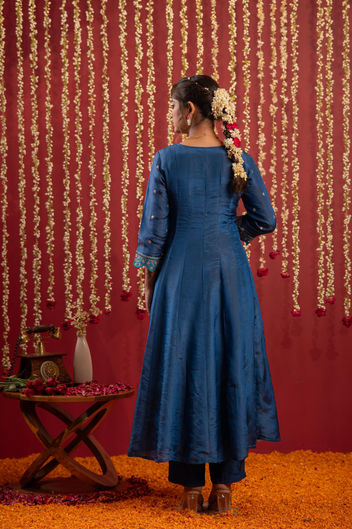 Grace your festive occasions in this Navy Blue nylon kurta set with intricate zari, mirror, thread, and sequin embroidery. Designed in a flared A-line cut with round neck and flared sleeves, it comes with straight pants and a matching dupatta.Each Size Pack of Content :- 1 Kurta, 1 Pant, 1 Dupatta Top Type :- Kurta Dupatta(Yes, No) :- Yes Top Pattern :- Embroidered Print Type :- Solid Top Fabric :- Nylon Top Design Styling :- Panelled Top Hemline :- Flared Top Length :- Calf Length Top Shape :- A-Line Neck :- Round Neck Sleeve Length :- 3/4 Sleeve Sleeve Styling :- Flared Sleeve Top Closure :- slip on Bottom Type :- Pant Bottom Fabric :- Viscose Bottom Pattern :- Solid Bottom Closure :- slip on Waistband :- partially elasticated Occasion :- festive Ornamentation :- Zari, Mirror Work, Thread Work, Sequence Dupatta Fabric :- Man Made Fiber Dupatta Pattern :- Solid Fit :- Regular Fit